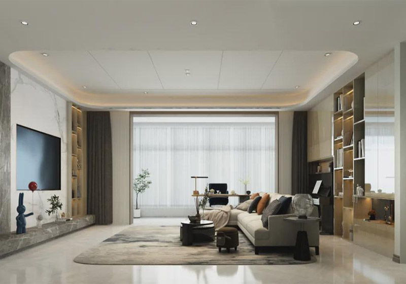 • 145㎡簡約風(fēng)三人居 無主燈設(shè)計(jì)+仿石材真get